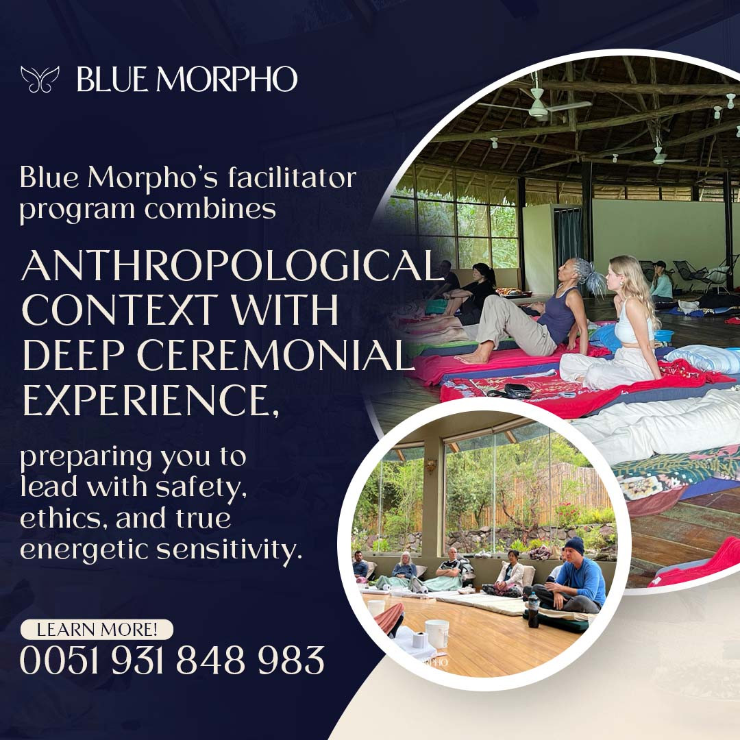 Blue Morpho in Peru was founded partly to address this gap. The curriculum builds on more than 20 years of practice. It combines proven knowledge with safe protocols. Graduates receive certification that affirms their ability to hold space responsibly.